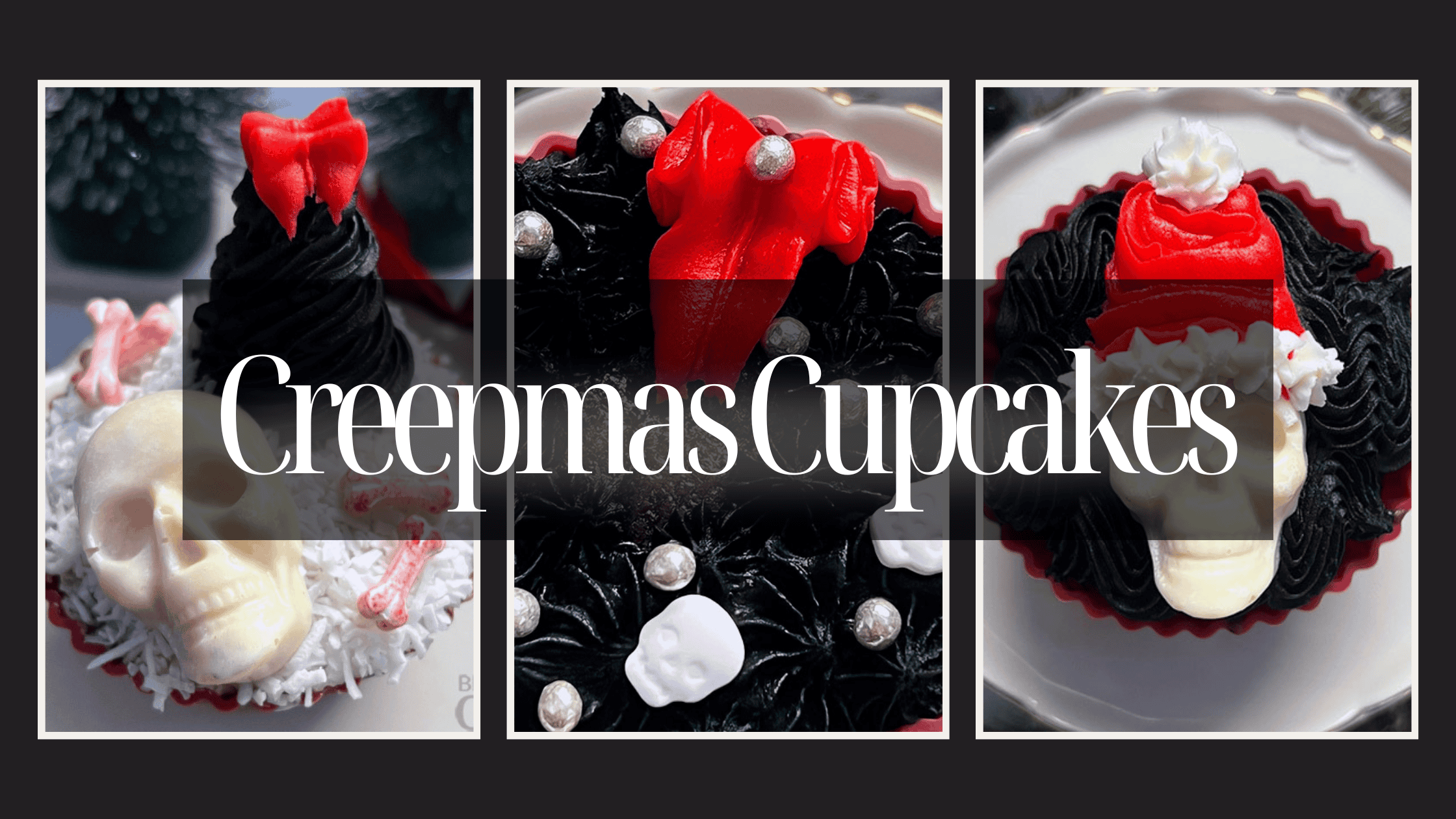 I’ve always been drawn to all things macabre and Halloween—from the skulls to the eerie traditions—but I also treasure the magic and joy that Christmas brings. As a self-proclaimed spooky girl at heart, I couldn’t resist blending my love for both and creating my own Creepmas cupcakes for a perfectly spooky holiday celebration!